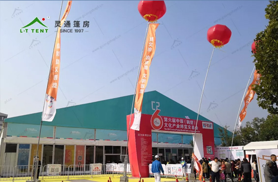 靈通篷房為鶴壁文博會共打造,兩組跨度40M 篷房、配置玻璃幕墻及KFC雙開門,面積達7200㎡以上,用途覆蓋整個鶴壁文博會C區(qū)。